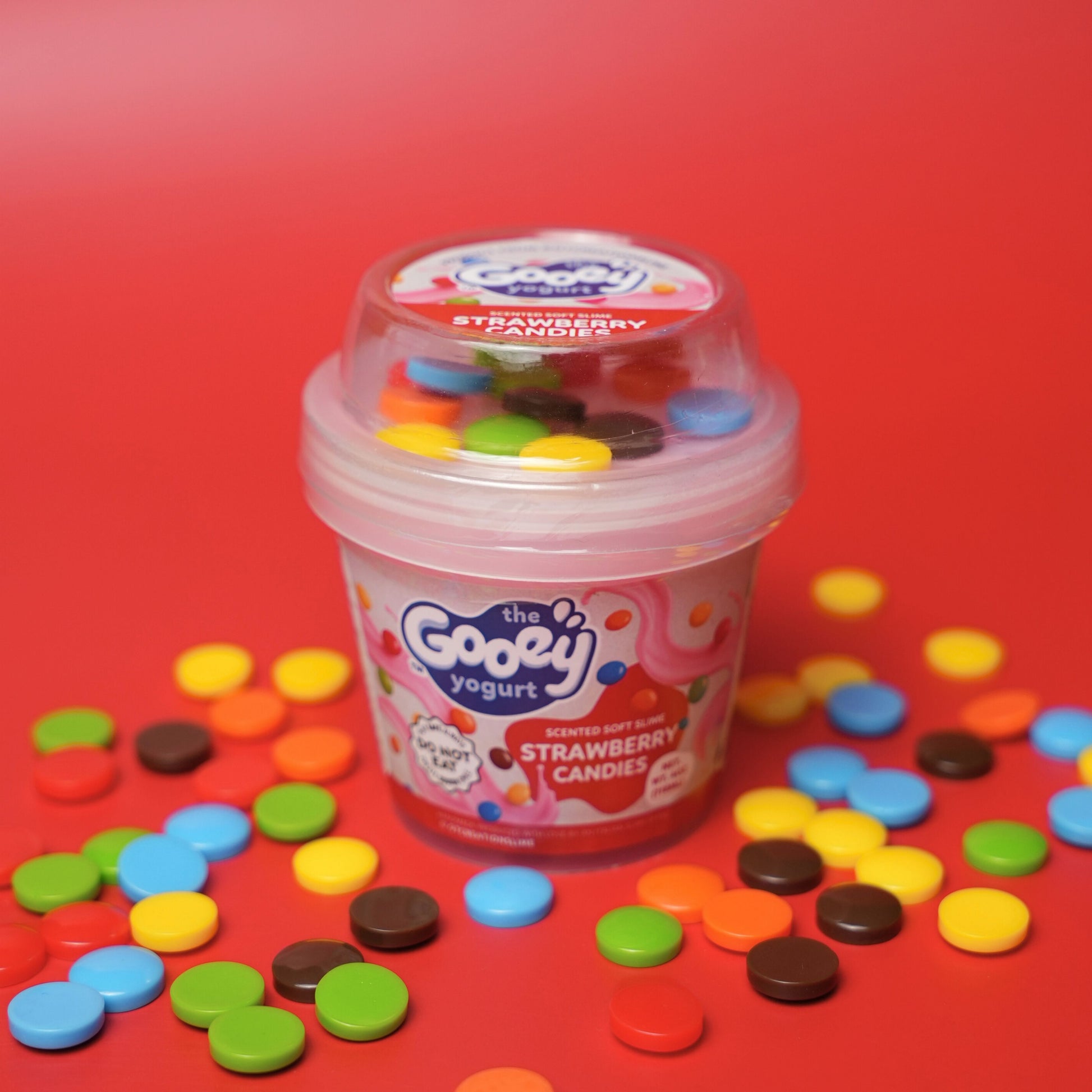 A soft pink slime with the sweet aroma of strawberries. It arrives with playful fake candy pieces as toppings, because who can resist a candy party in slime form?