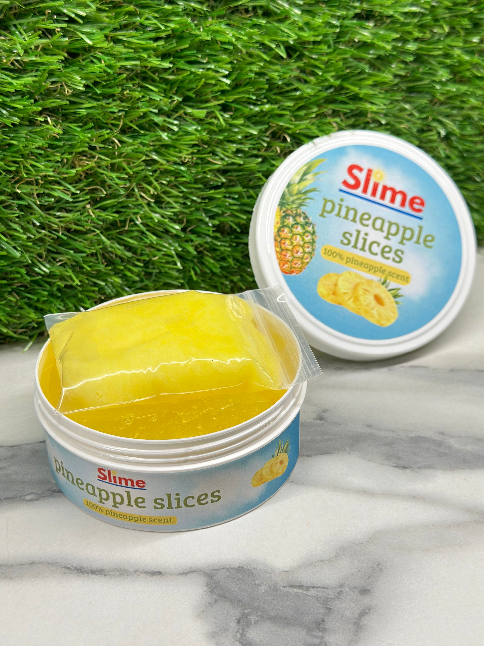 The kit consists of creating a slice of pineapple and dipping it into transparent slime, letting it rest and then mixing everything together. The final slime is super soft and icee, smells like PINEAPPLE!